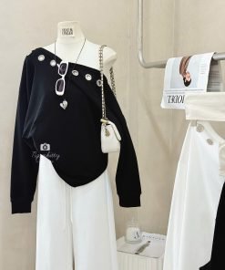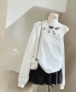 Đẹp quá gòi , toy nôn diện đồ chơi TẾT lắm gòi , áooo lệch vai khoen sắt , chuẩn sịn như lôcal brand Thái lun á 😎😎😎 mặc trend xĩu .