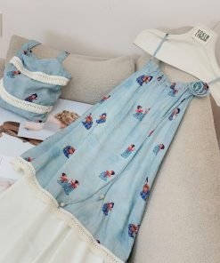 Đầm maxi 2s thêu kèm túi