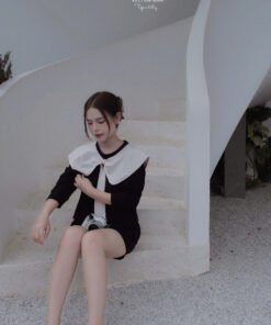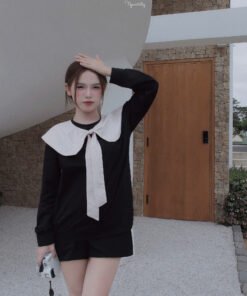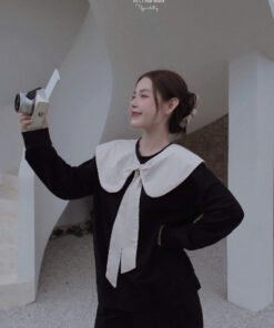 *** full set dễ mặc , phần cổ áo sen có thể tháo rời ra được – biến hoá full set đen trơn simple black siu đẹp heeee 😍 😍 😍